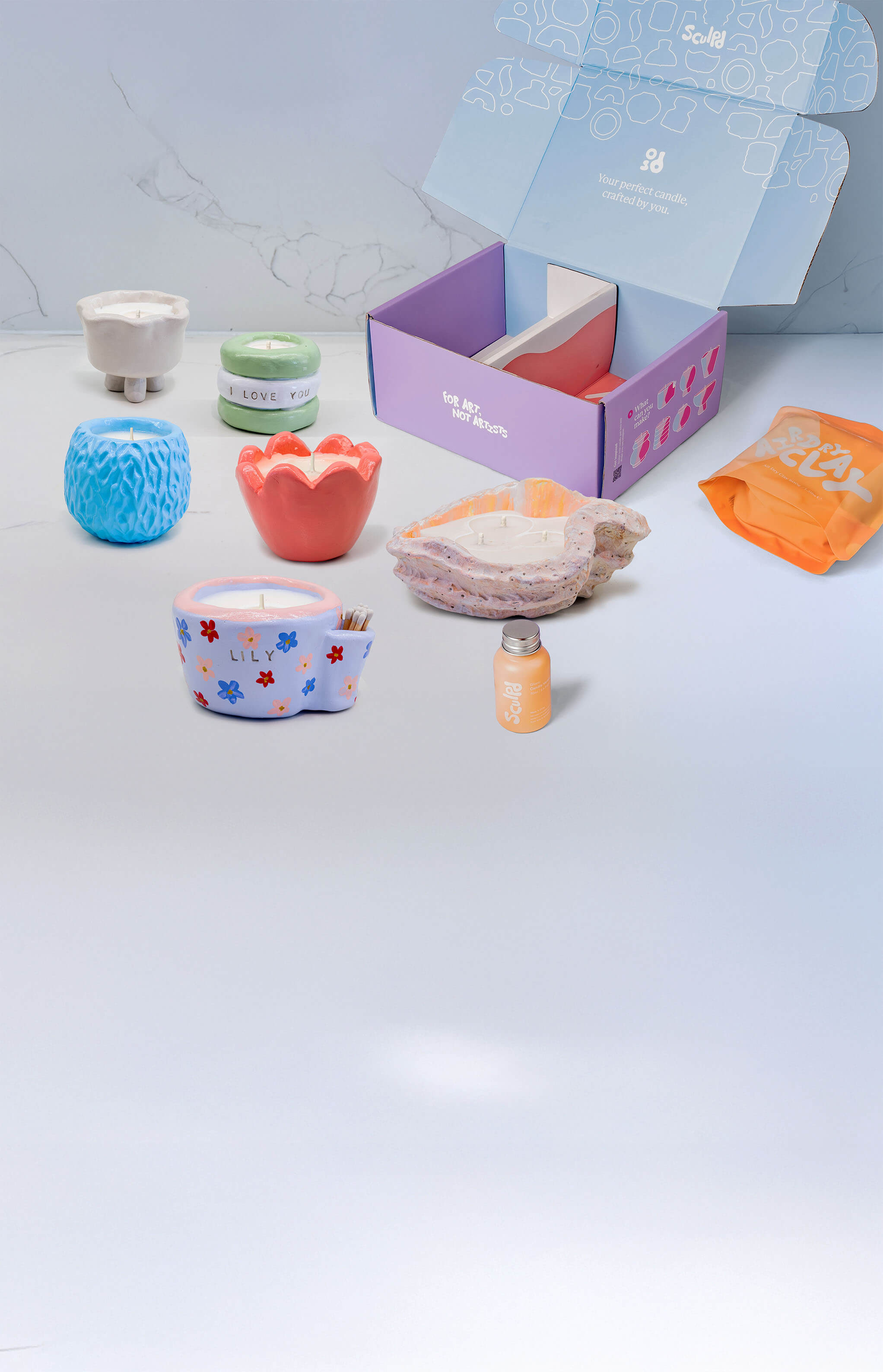 Set the mood with a candle-lit clay session. Sculpt, paint, and pour your own candles - designed by you, for you two.
