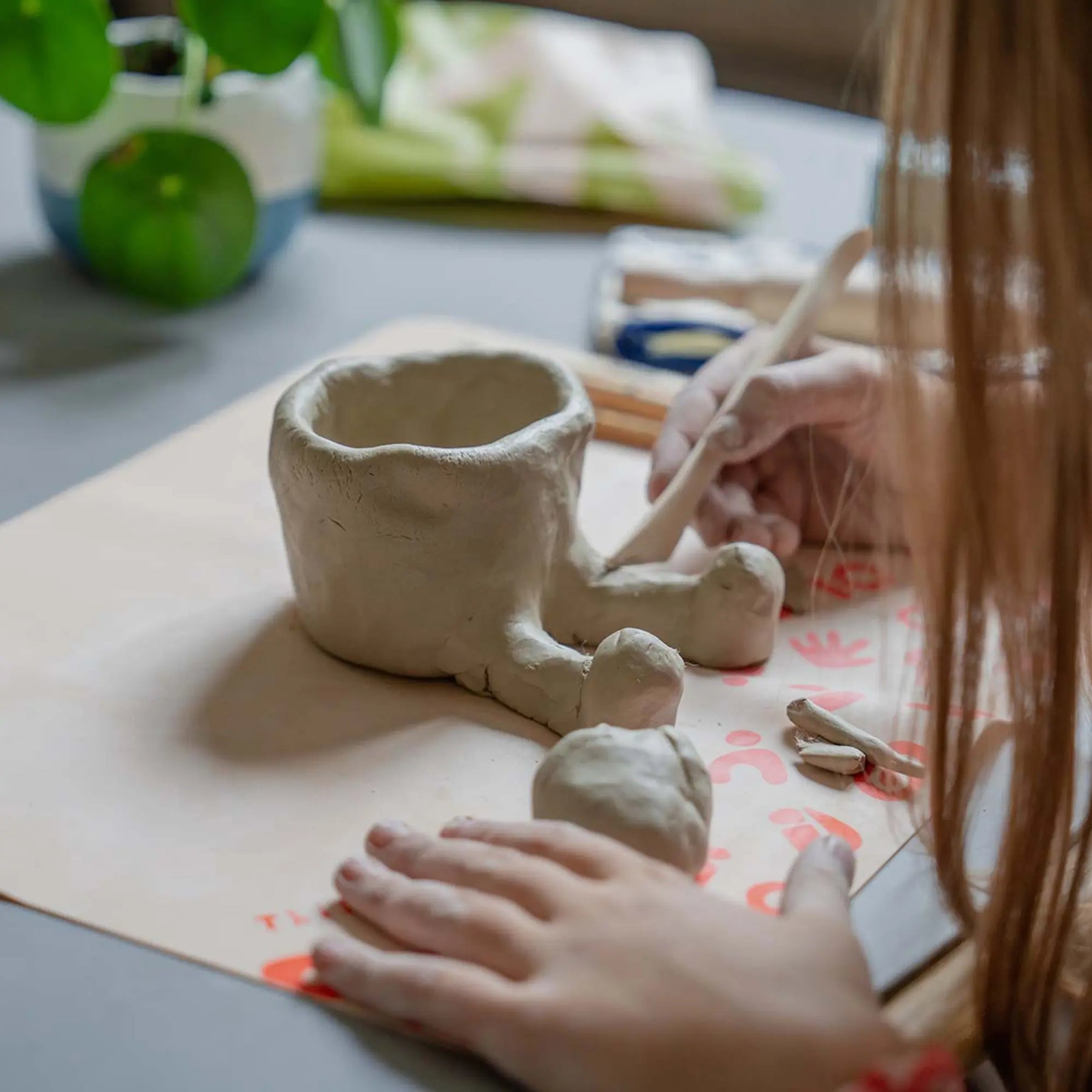 Crafting pottery with Sculpd kids mess mat